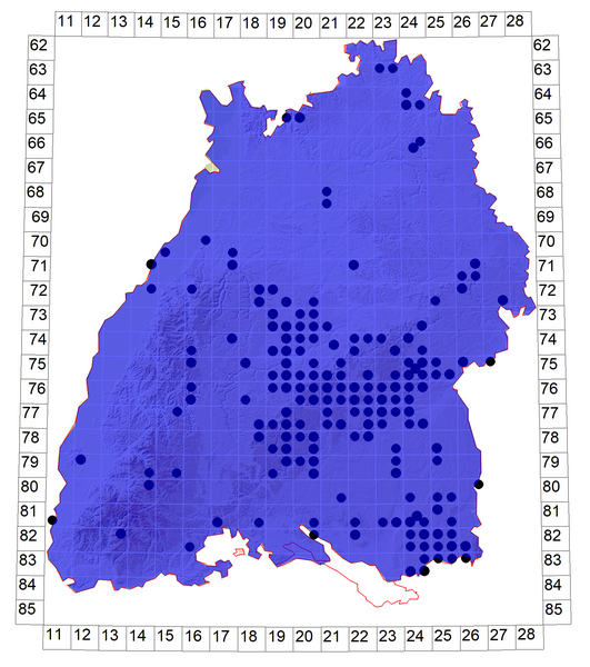 Schematische Verbreitung von M. galathea in Baden-Württemberg: