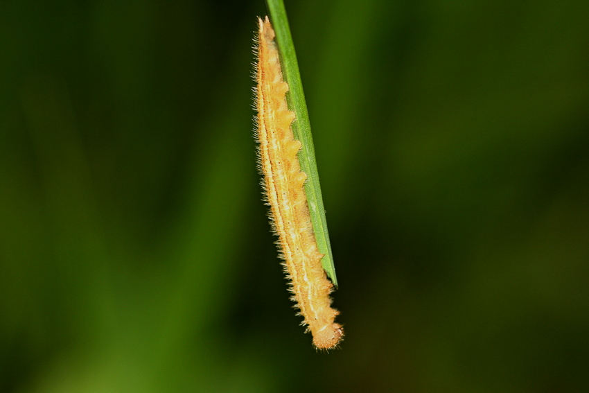 Bei Nacht aktive Raupe von M. galathea im Albvorland (NSG Spitzberg-Ödenburg), Mai 2021.