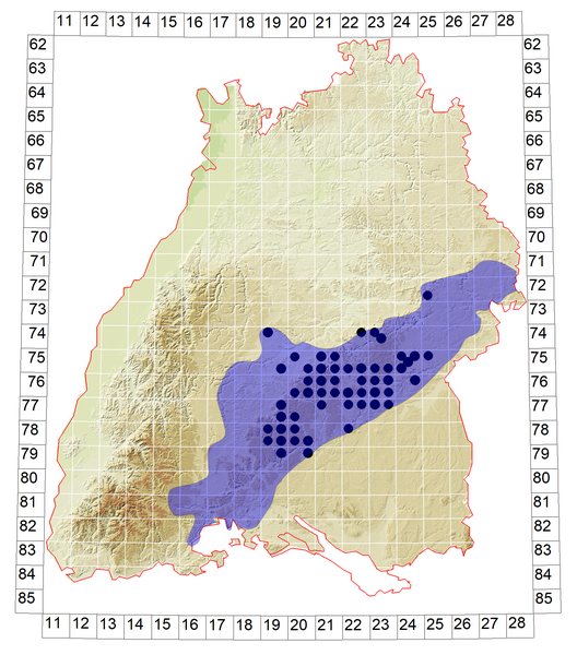 Schematische Verbreitung von M. britomartis in Baden-Württemberg: