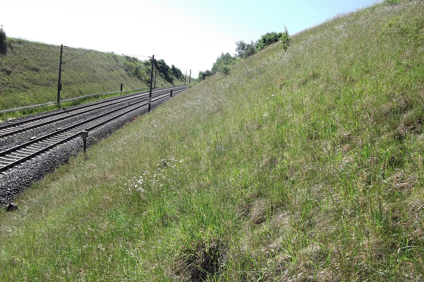 Magere Halbtrockenrasen-Böschung auf der Schwäbischen Alb (Ringingen) als Habitat des Östlichen Scheckenfalters.