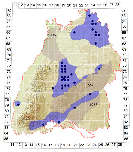 Schematische Verbreitung von M. cinxia in Baden-Württemberg: