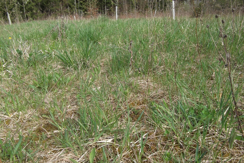 Aufsicht auf das Larvalhabitat von M. cinxia in den Oberen Gäuen (Schafhausen); schwachwüchisge, lückige Vegetation.