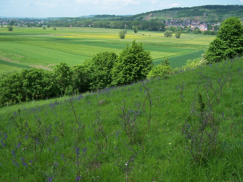Habitat von M. cinxia im Albvorland (Rottenburg-Weiler), extensiv genutzte Magerwiesen-Hänge.