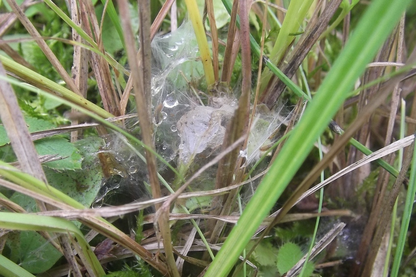 Dieses kleine Raupengespinst in einer oberschwäbischen Streuwiese (Siberatsweiler) gehört höchstwahrscheinlich zu M. diamina, August 2014.