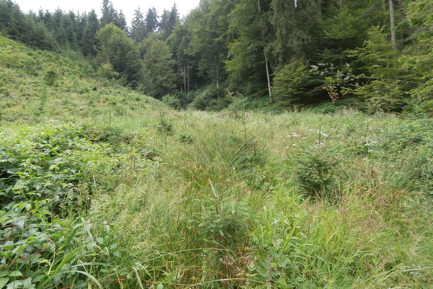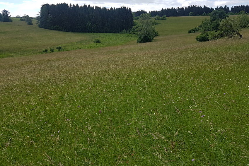 Habitat des Baldrian-Scheckenfalters auf der Schwäbischen Alb (NSG Beurener Heide); Feuchtbrachen und angrenzendes Extensivgrünland.