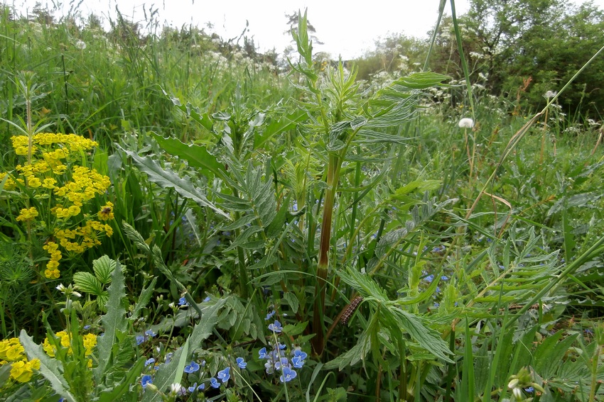 Detailblick ins Larvalhabitat des Baldrian-Scheckenfalters auf der Schwäbischen Alb (Oberstetten).