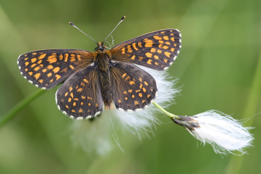Flügelunterseite von M. diamina in einem Niedermoor Oberschwabens (Kisslegg), Juni 2010.