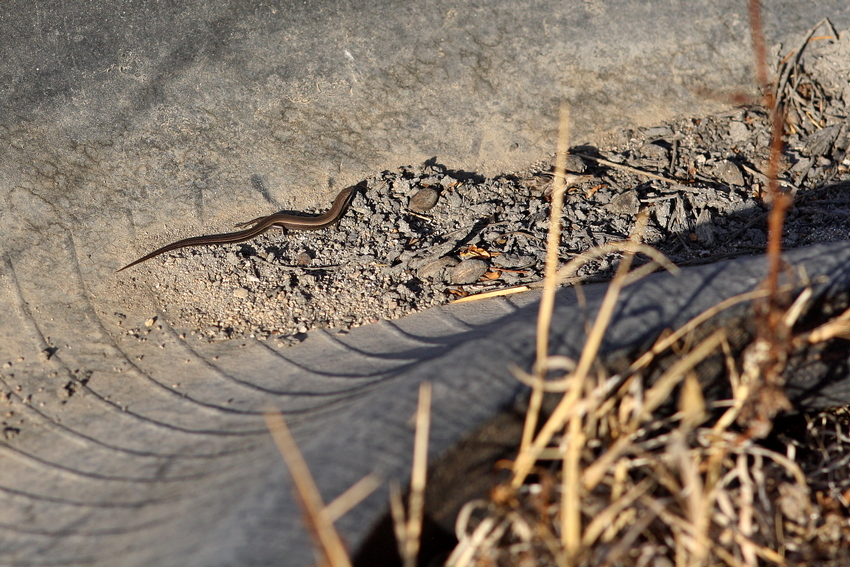 ...und die Johannisechse (Abplepharus kitaibelii), die sich in einem herum liegenden Autoreifen sonnte.