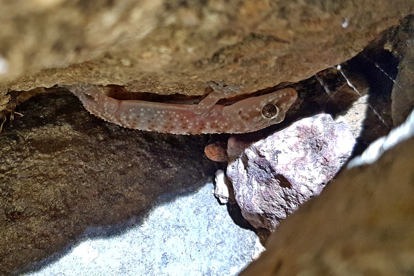 Am Abend im Bachtobel unterwegs - der Europäische Halbfinger (Hemidactylus turcicus).