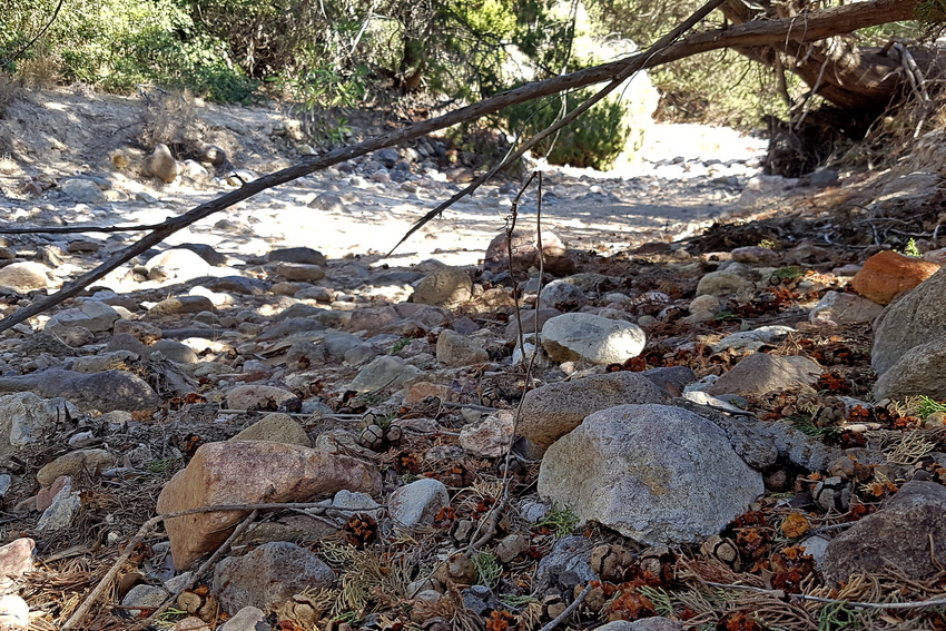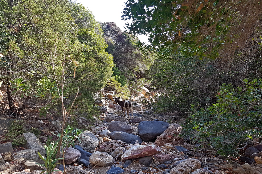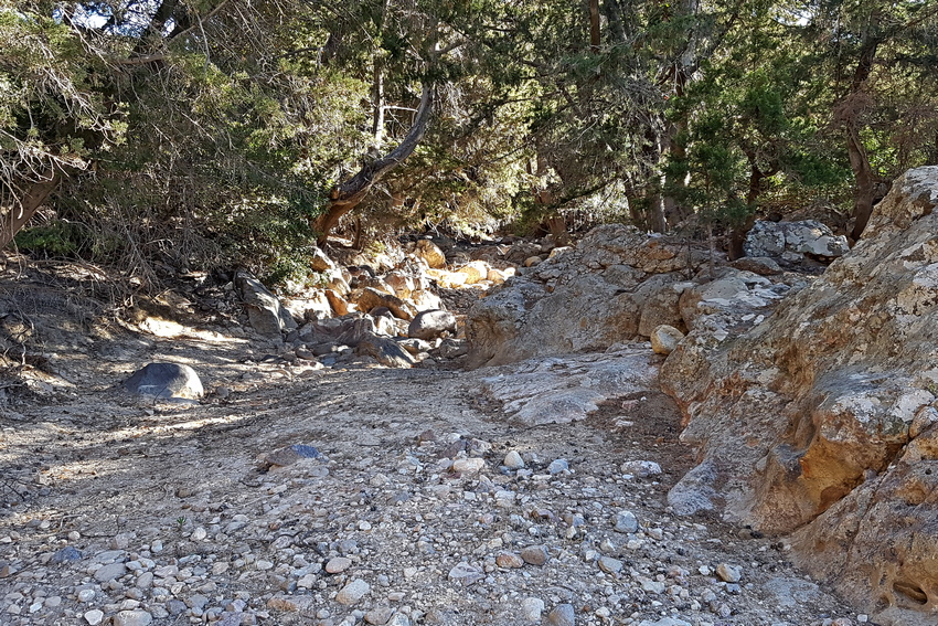 Von höheren Bäumen gesäumter Bachtobel im Westen der Insel.