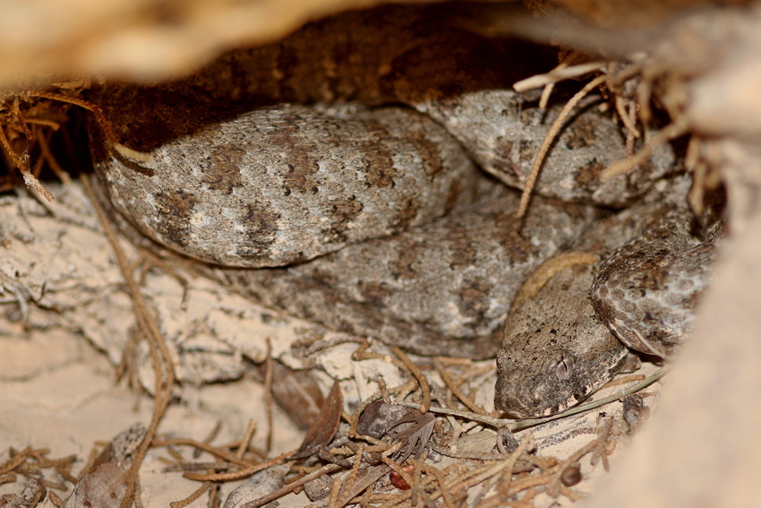 Überraschung in der Mittagssonne - zwei im Schatten lauernde Exemplare der Milosotter.