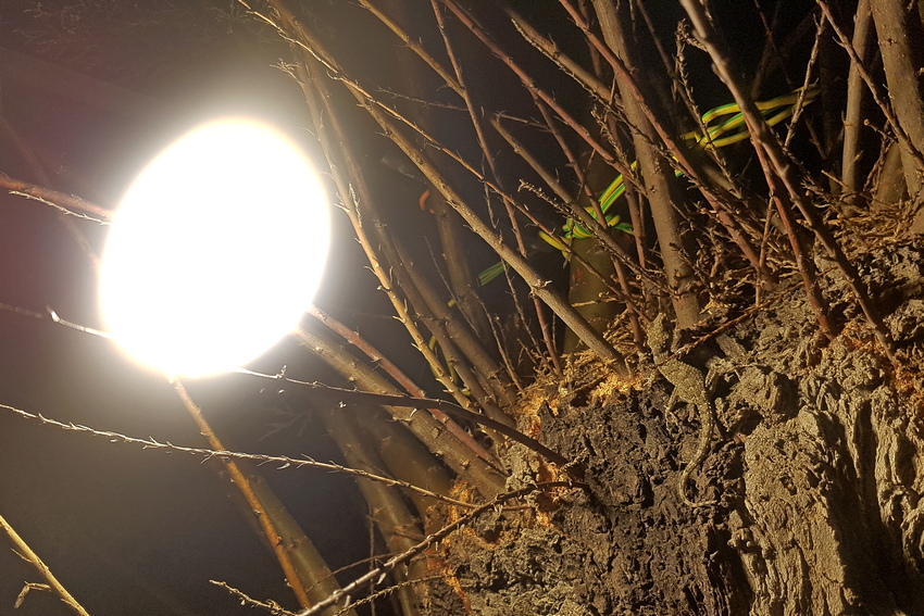 Dieser Ägäische Nacktfinger (Mediodactylus kotschyi) lauerte am Abend an einer Straßenlaterne auf Futter.
