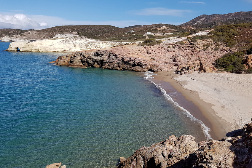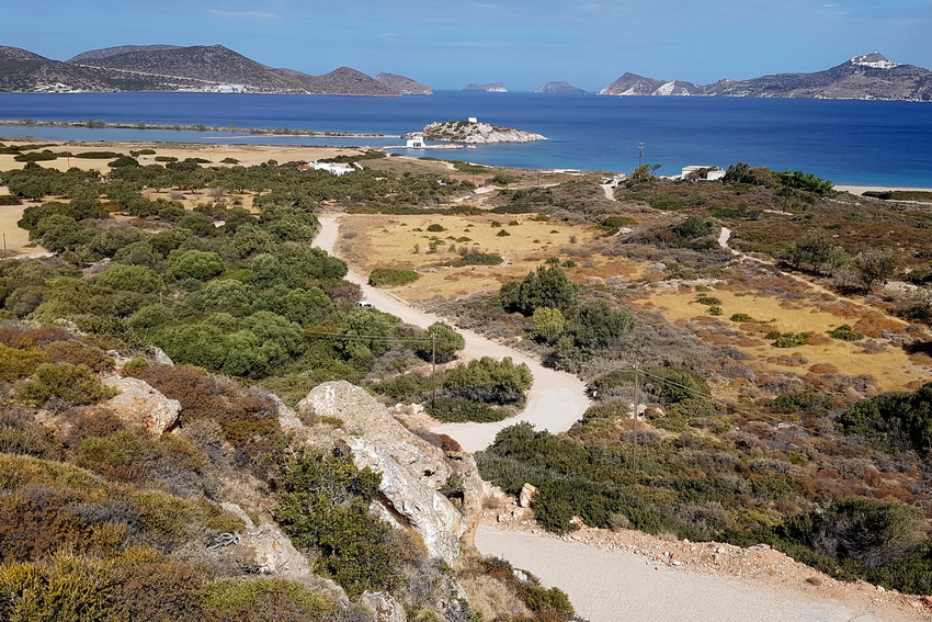 Blick auf die Küstenbereiche im zentralen Teil der Insel, die auch Lebensraum der Milosotter (Macrovipera schweizeri) sind.