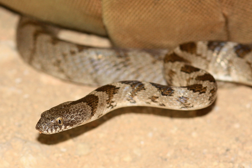 Detailaufnahme des im Schatten auf Beute lauernden Exemplars der Milosotter.