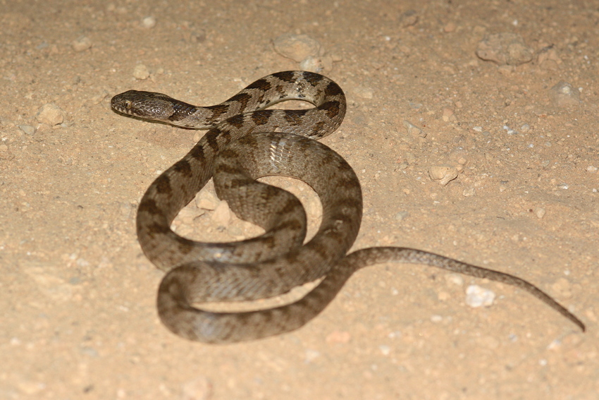 An einer Straßenböschung war eine adulte Katzennatter (Telescopus fallax) auf der Suche nach Nahrung.