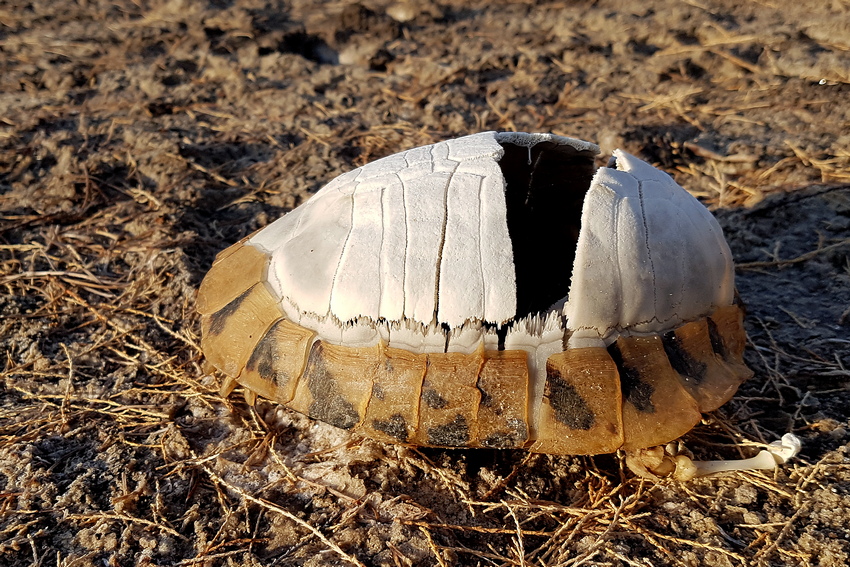 Panzer der auf Milos ursprünglich nicht heimischen Griechischen Landschildkröte (Testudo hermanni).