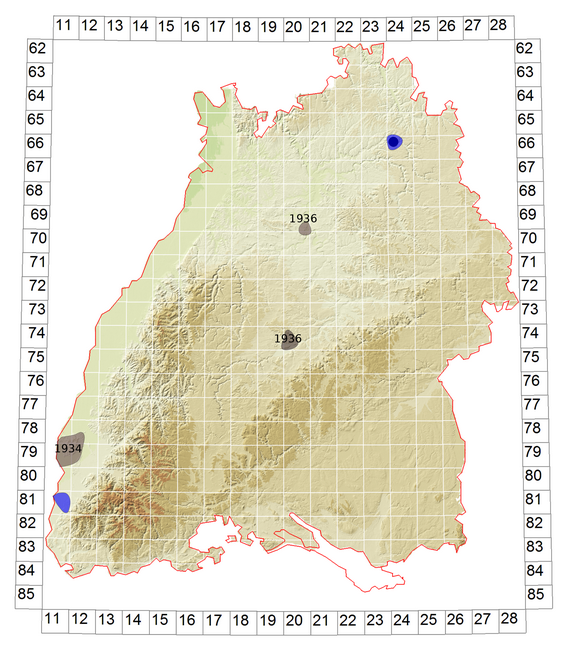 Schematische Verbreitung von M. frontalis in Baden-Württemberg: