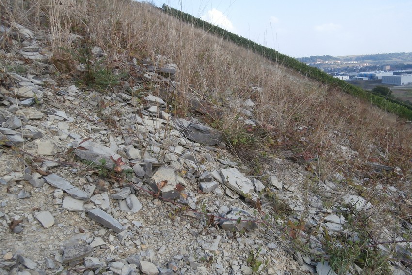 Kalkscherben-Hang in der Kocher-Jagst-Region (Dörzbach) als Kernhabitat von M. frontalis.