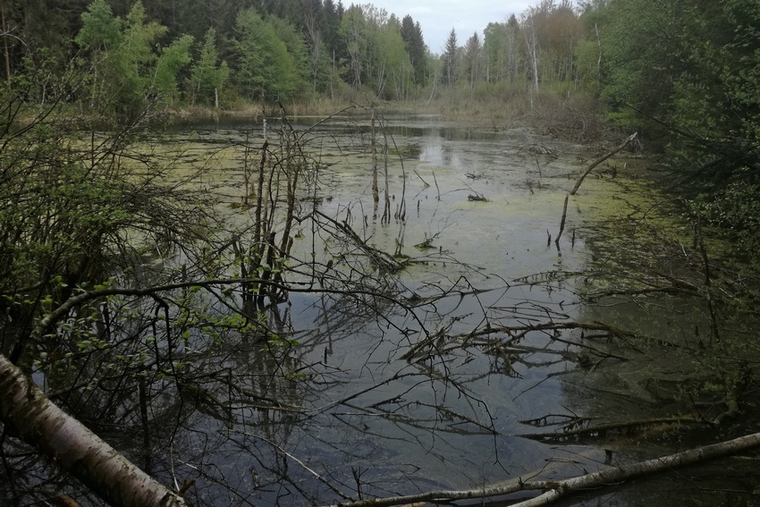 Weiteres Habitat der Östlichen Ringelnatter im württembergischen Allgäu (Kißlegg); ein Weiher in einem ehemaligen Torfstichgebiet mit besonnten Gewässerufern.