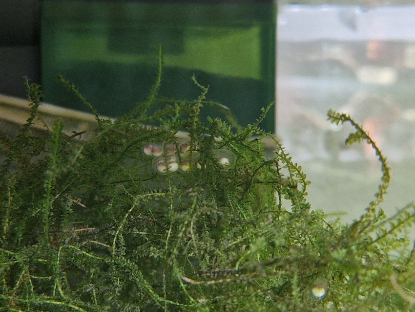 Im Winter 2021/22 schlüpften nur verhältnismäßig wenige Larven, die meisten Eier verpilzten. Ich führe das auf die nach dem Umzug höheren Raumtemperaturen von 17-21 °C zurück, die für andere im Terrarienraum lebende Tierarten notwendig sind. Diese erhöhten Temperaturen führen wahrscheinlich, trotz regelmäßiger Reinigung des Aquariums, zu einer erhöhten Verpilzungsrate. Die Larven zog ich in Kleingruppen in reich strukturierten Aquarien (24-40 l) mit integrierten Nanofiltern auf. Hierdurch hatte ich bei den Larven kaum noch Verluste. Letztendlich erhielt 15 vitale Jungtiere.
