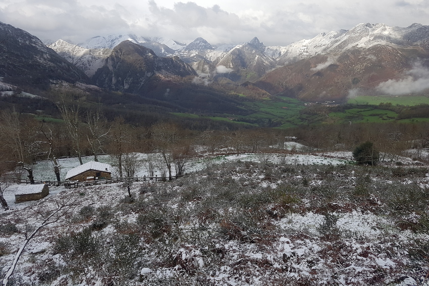Witterungsbedingungen die umgebenden, von Rindern beweideten Berghänge ab, die