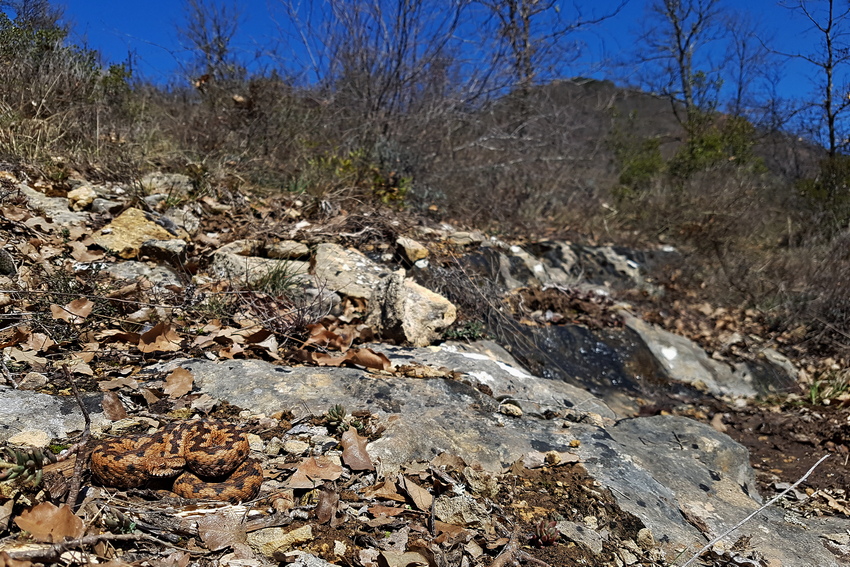 Reise: Am Fuße einer Hecke lag ein Weibchen der Iberischen Kreuzotter, das