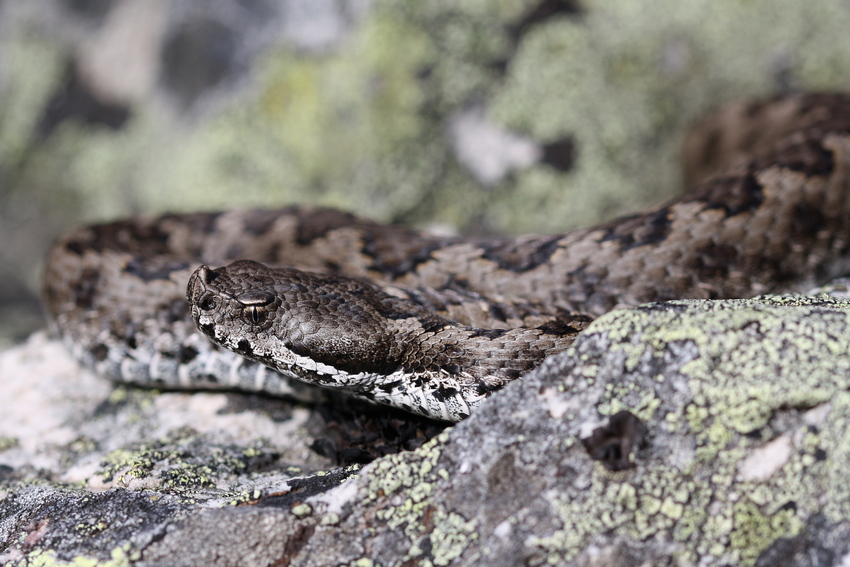 Männchen der Iberischen Kreuzotter auf der Suche nach einem Weibchen.