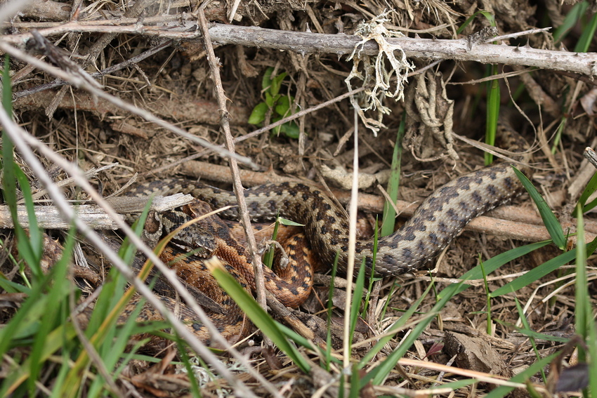 Unser erster Fund der Iberischen Kreuzotter (Vipera seoanei) war gleich ein Paarungsspiel zwischen Männchen und Weibchen.