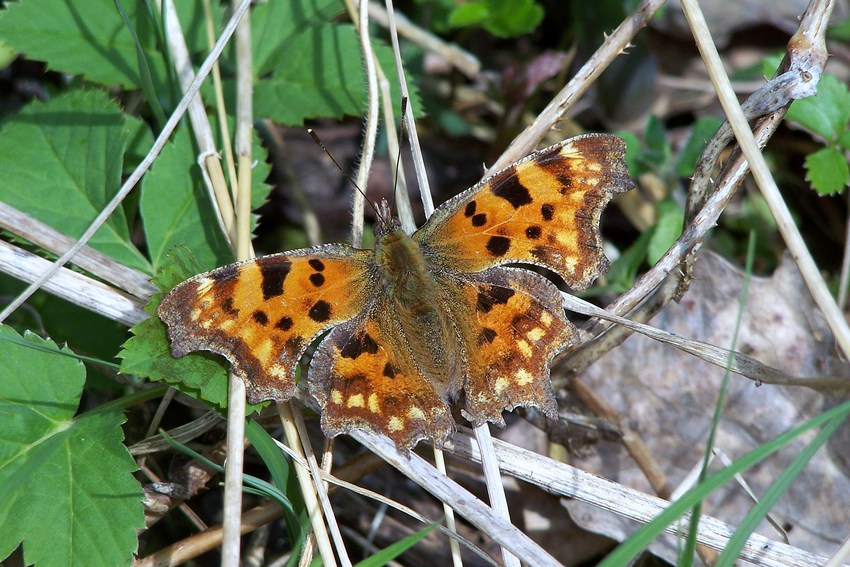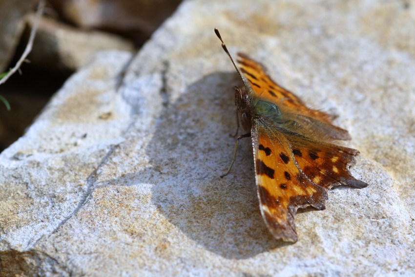 Frisch überwinterter C-Falter (Polygonia c-album) im Albvorland (NSG Schaichtal), April 2008.