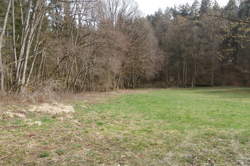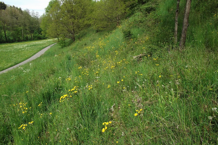 Weiteres charakteristisches Habitat von P. c-album im Albvorland (NSG Schaichtal); Saumbereiche zwischen Gehölzriegeln und extensiv genutztem Grünland.