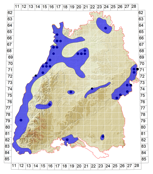 Schematische Verbreitung von O. caerulescens in Baden-Württemberg: