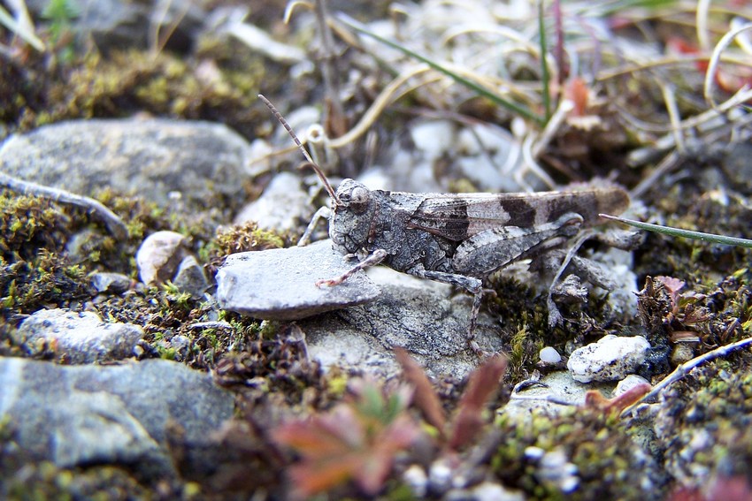 Die Vegetation muss für die Blauflügelige Ödlandschrecke lückig sein, Offenboden in Form von Rohboden, Fels oder Kies muss in ausreichender Menge vorhanden sein, Oberschwaben (NSG Annaberg).