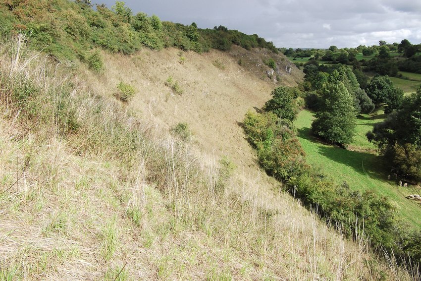 Weiteres Habitat der Blauflügeligen Ödlandschrecke in den Oberen Gäuen (NSG Kochhartgraben); steile und teilweise noch lückige sowie mit Felsen durchsetzte Halbtrockenrasen.