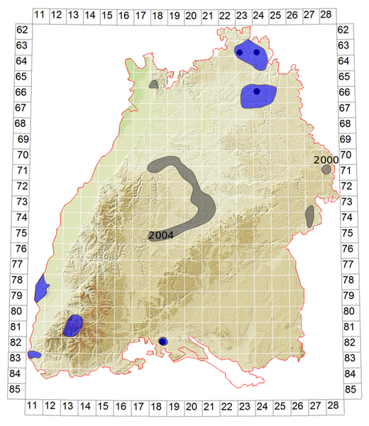 Schematische Verbreitung von O. germanica in Baden-Württemberg:
