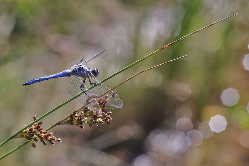 Männchen des Südlichen Blaupfeils (Orthetrum brunneum) in Oberschwaben (Konstanz) an einem sommerwarmen Rinnsal, August 2010.