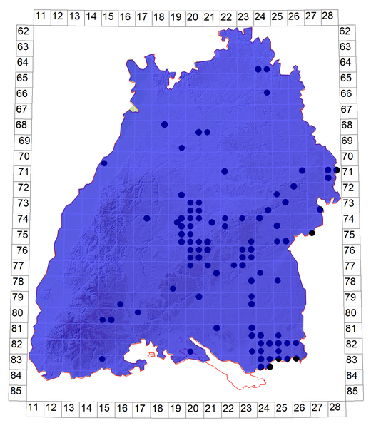 Schematische Verbreitung von P. machaon in Baden-Württemberg: