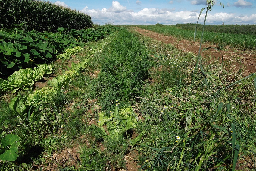Larvalhabitat von P. machaon im Albvorland (Waldenbuch). Ein extensiv genutzter Acker mit angebauten Karotten, in dem insgesamt 16 Raupen gefunden wurden.