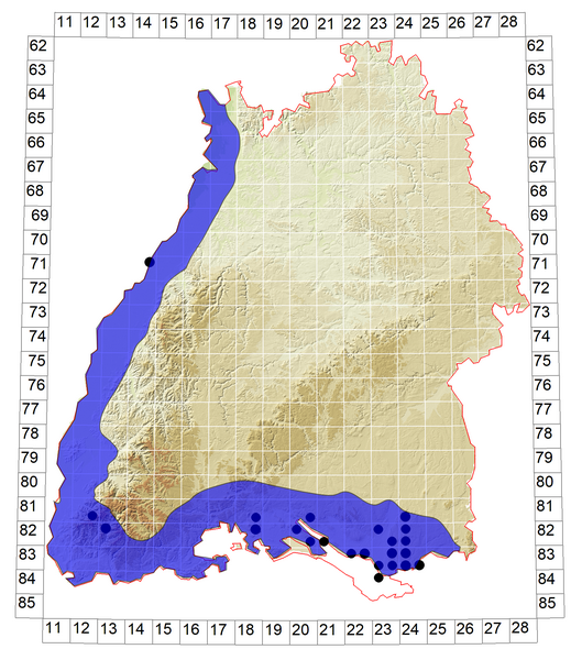 Schematische Verbreitung von M. parapleurus in Baden-Württemberg: