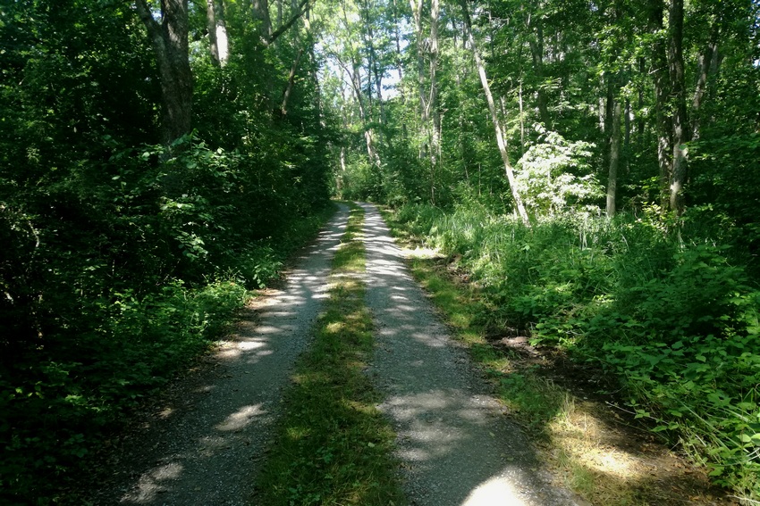Wechselspiel zwischen Licht und Schatten an einem Waldweg im Kraichgau (Vaihingen an der Enz), typisches Habitat von P. aegeria.