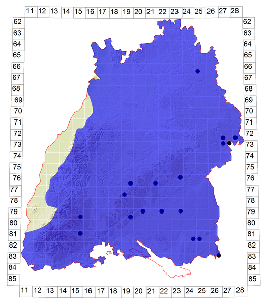 Schematische Verbreitung von P. plantaginis in Baden-Württemberg: