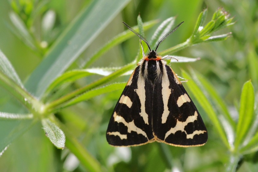 Wegerichbär (Parasemia plantaginis) in einem extensiv genutzten Wiesental in der Kocher-Jagst-Region (Herrentierbach), Juni 2011.