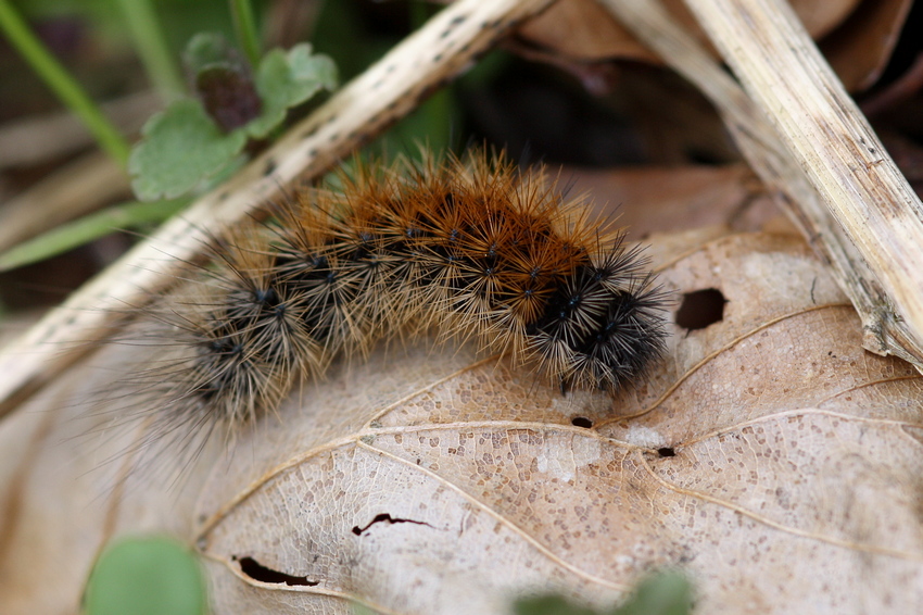 Larve des Wegerichbärs in einem Tobel auf der Adelegg, Mai 2017.