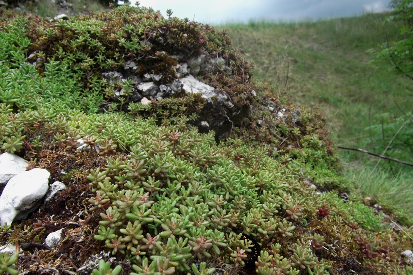 Larvalhabitat des Apollofalters am südlichen Albtrauf, eine Sedum-reiche Felskuppe.