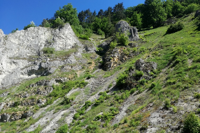 Weiteres Habitat des Roten Apollos auf der Schwäbischen Alb; Trockenrasen mit eingestreuten Felsköpfen.