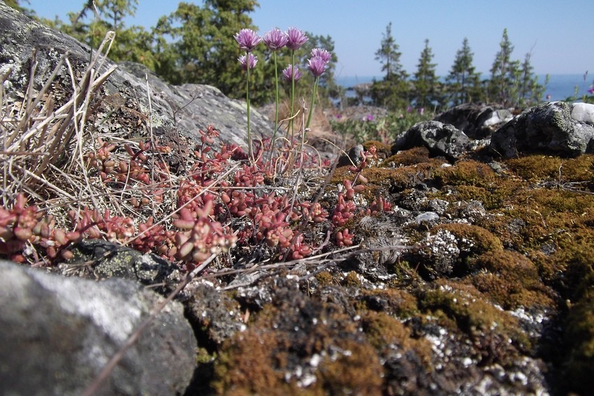 Larvalhabitat von P. apollo in Schweden (Hallstavik), Sedum-Bestände in den Felsen an der Meeresküste.
