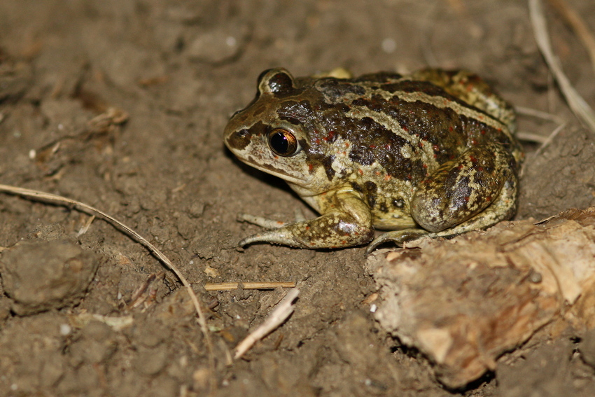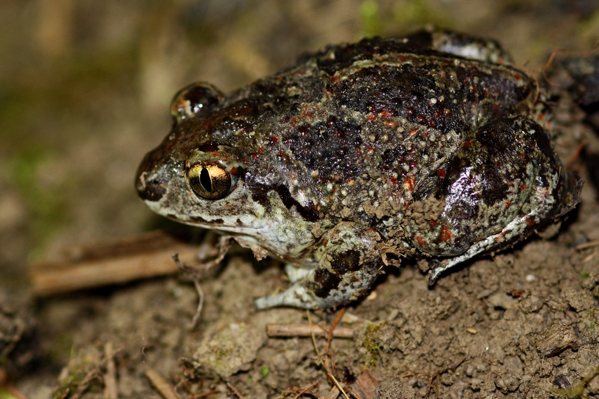 Weibchen der Knoblauchkröte (Pelobates fuscus) am nördlichen Oberrhein (Philippsburg), April 2015.