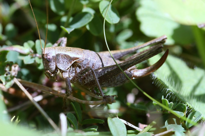 Weibchen der Gewöhnlichen Strauchschrecke (Pholidoptera griseoaptera) an einem gebüschreichen Magerrasenrand bei Bonndorf (Baar-Wutach-Gebiet), Oktober 2010.