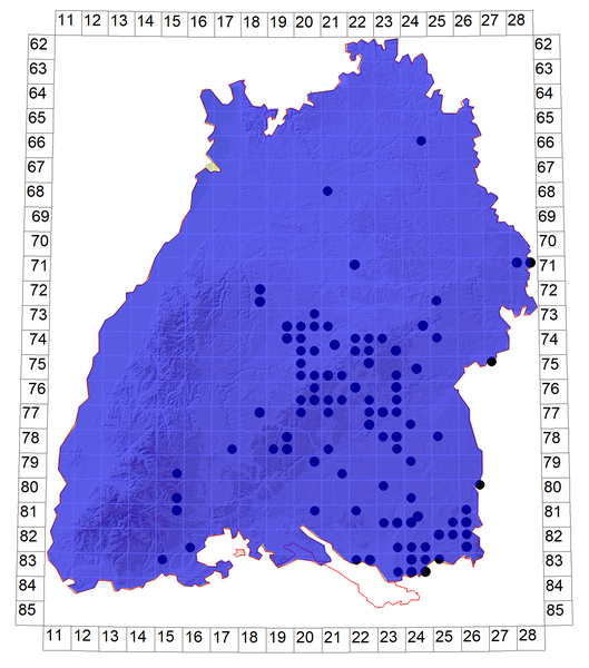 Schematische Verbreitung von P. brassicae in Baden-Württemberg: