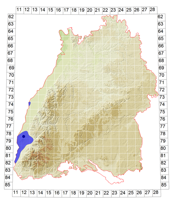 Schematische Verbreitung von T. tessellata in Baden-Württemberg: