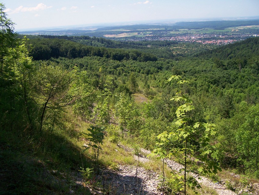 Habitat des Argus-Bläulings im Albvorland (Kohlberg), vegetationsarme Bereiche in einem Steinbruch-Gelände.